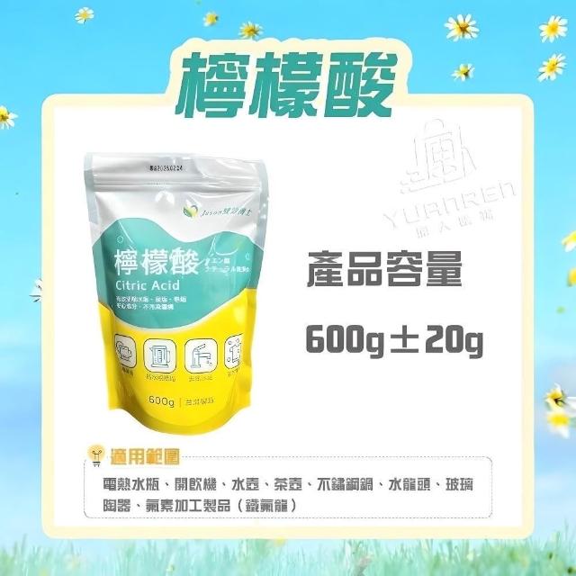 YUANREN 原人購物檸檬酸 水垢 清潔劑 600G 100%台灣製造 碳酸鈉 過碳酸鈉 神奇檸檬 保溫杯 清潔劑 陶瓷杯 水垢清潔劑 去漬