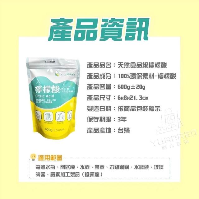 YUANREN 原人購物檸檬酸 水垢 清潔劑 600G 100%台灣製造 碳酸鈉 過碳酸鈉 神奇檸檬 保溫杯 清潔劑 陶瓷杯 水垢清潔劑 去漬
