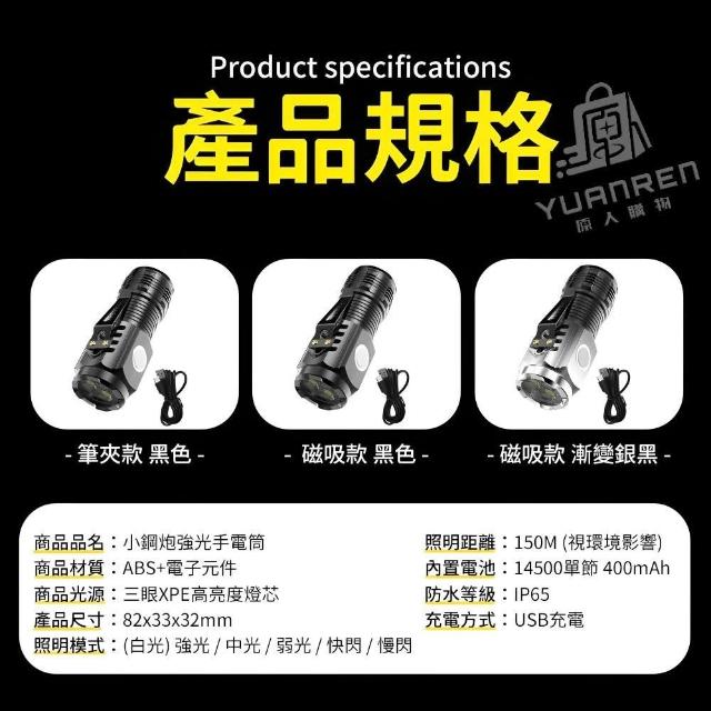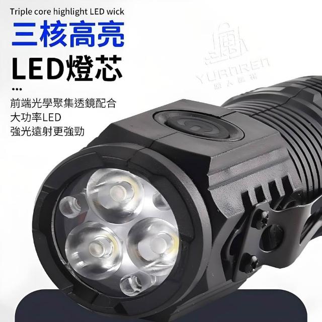 YUANREN 原人購物手電筒強光 手電筒 強光手電筒 三眼LED款 迷你手電筒 充電手電筒 超亮手電筒 釣魚 工作燈 修車水電 登山