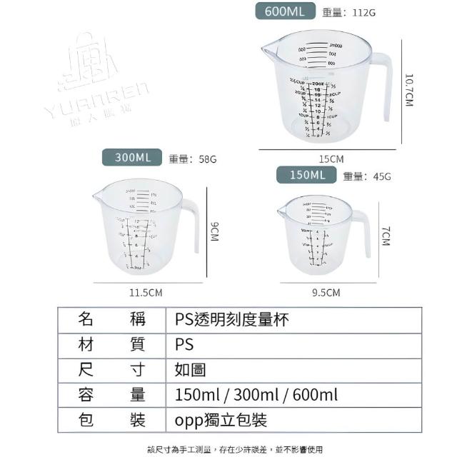 YUANREN 原人購物食品級 透明量杯 量杯 尖嘴量杯 150ML 300ML 600ML 刻度量杯 塑膠量杯 烘焙工具 烘焙 樹脂 量杯