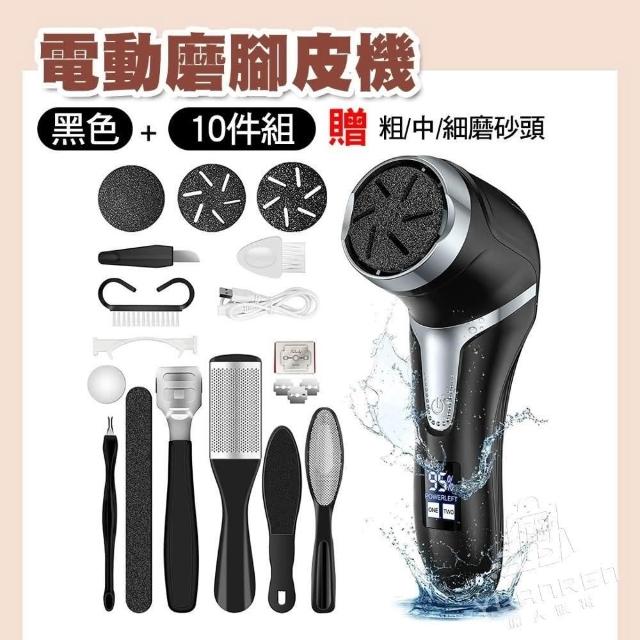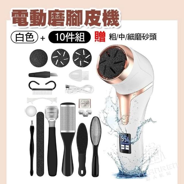 YUANREN 原人購物電動磨腳器 1年保固 磨腳皮神器 10件套組 磨腳皮機 防水設計 腳底去角質 磨皮機 去角質 除腳皮 修腳皮工具