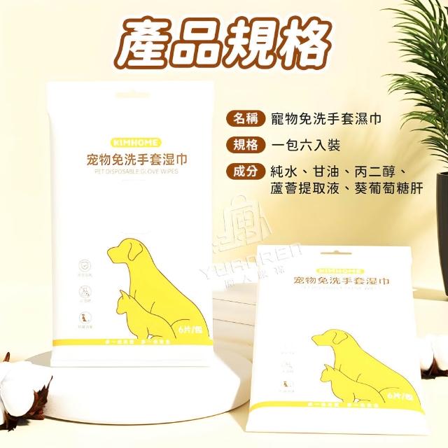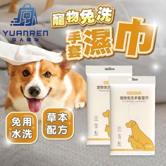 YUANREN 原人購物寵物手套濕紙 一包六入 寵物濕紙巾 寵物洗澡 寵物乾洗澡 寵物手套 寵物擦澡 狗狗用品 貓咪洗澡 狗狗洗澡 手套