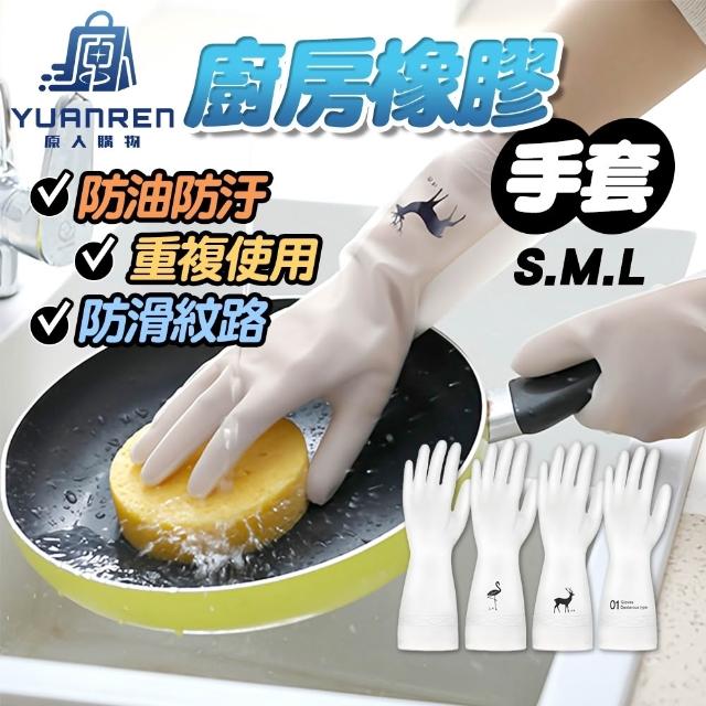 YUANREN 原人購物洗碗手套 手套 防滑手套 S M L 橡膠手套 廚房 PVC 防水 防油漬 重複使用 洗餐具碗盤
