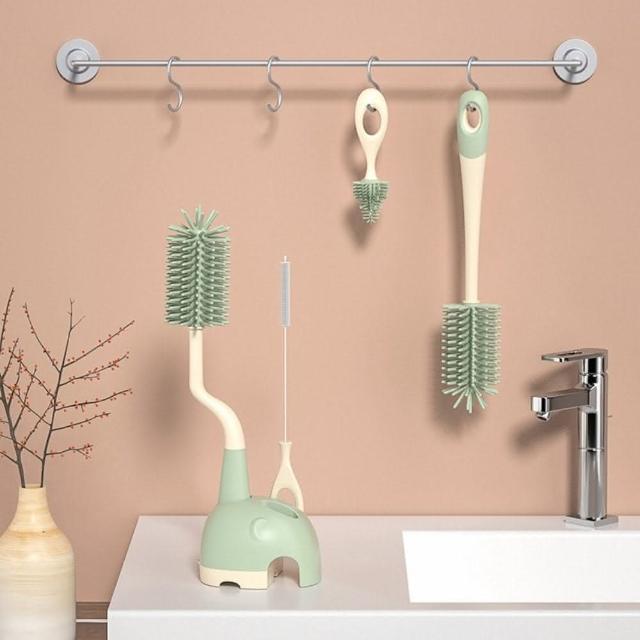 • 矽膠軟刷毛呵護奶瓶及奶嘴
