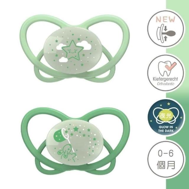 nip 德國蝶型安撫奶嘴-夜光款2入組(四色任選;雙扁型;含收納盒;德國牙醫師推薦)
