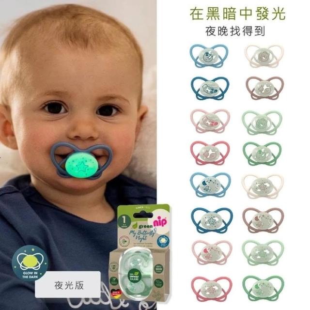 nip 德國蝶型安撫奶嘴-夜光款2入組(四色任選;雙扁型;含收納盒;德國牙醫師推薦)