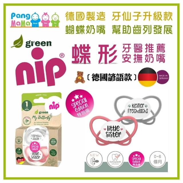 nip 德國蝶型安撫奶嘴-德國諺語款款2入組 (四色任選;雙扁型;含收納盒;德國牙醫師推薦)