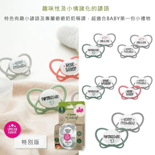 nip 德國蝶型安撫奶嘴-德國諺語款款2入組 (四色任選;雙扁型;含收納盒;德國牙醫師推薦)