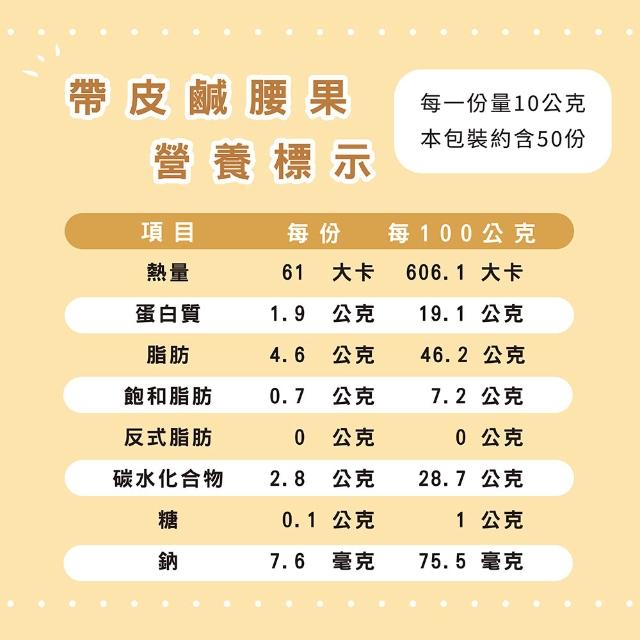 - 嚴選巨大粒帶皮腰果,大口超滿足