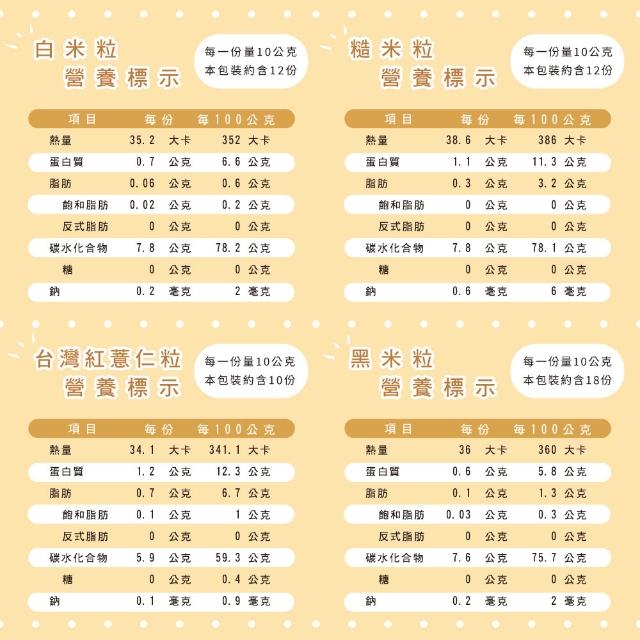 展榮商號白米粒120g/糙米粒120g/黑米粒180g/紅薏仁粒100g(原味米香粒、手指零食)