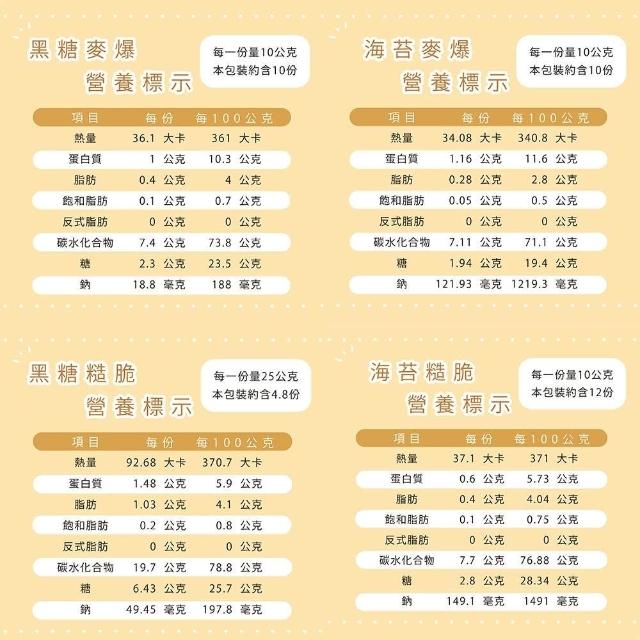 展榮商號麥爆100g/糙脆120g(黑糖/海苔、小麥粒、花東糙米粒、米香粒、牛奶脆片)