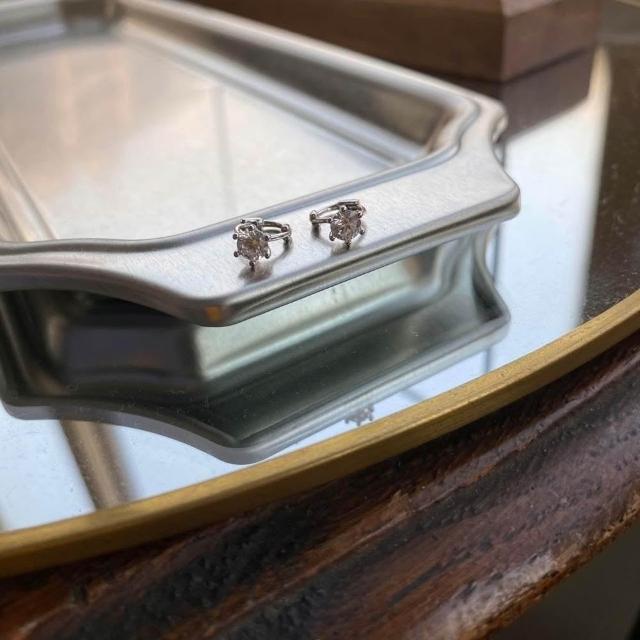 em925純銀┃耳扣式耳環┃4mm鑽細圈扣