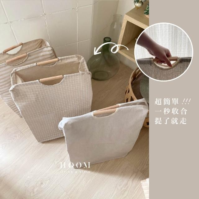 Hoom 禾慕生活日式木把手棉麻洗衣籃|小款洗衣籃 髒衣籃 洗衣籃折疊 置物籃 收納籃折疊 日式髒衣籃 聖誕禮物 交換禮物