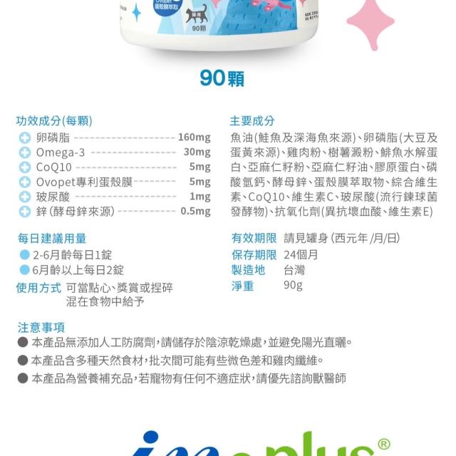 IN-Plus完整型機能魚油嚼錠 貓用 90顆(寵物保健品 貓咪保健品 貓咪皮膚保健品) IN-PLUS