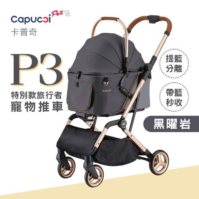 Capucci pet 卡普奇P3特別款 (黑曜岩) 旅行者多功能寵物車 狗狗推車 可上三鐵 寵物推車 一鍵自動收展