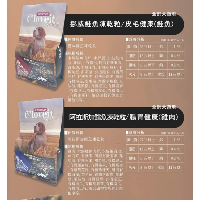 歐力 挪威鮭魚凍乾粒全齡犬(皮毛鮭魚) 2kg 狗飼料 有機糧 凍乾糧 犬糧