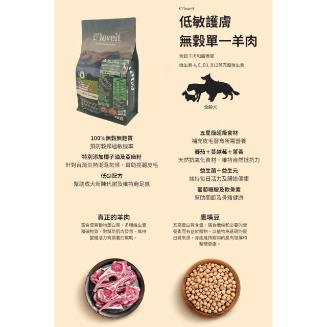 歐力 無穀低敏護膚 單一羊肉 2KG/6KG 狗飼料 全齡犬 幼犬 成犬飼料