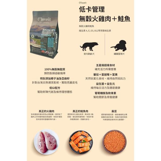 歐力 無穀低卡管理 (火雞肉+鮭魚) 2KG/6KG 狗飼料 低卡飼料 成犬飼料 寵物飼料