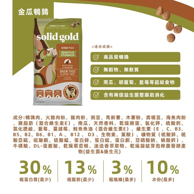 Solid gold 素力高無穀金瓜鵪鶉 (成貓) 貓糧 鵪鶉蛋白 貓咪飼料 腸胃敏感 無穀飼料 貓糧 成貓