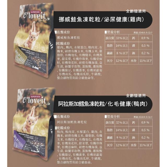 歐力O'love 3D凍乾有機糧 全齡貓化毛健康(鴨肉) 2kg 貓咪飼料 阿拉斯加鱈魚凍乾 貓飼料 凍乾糧