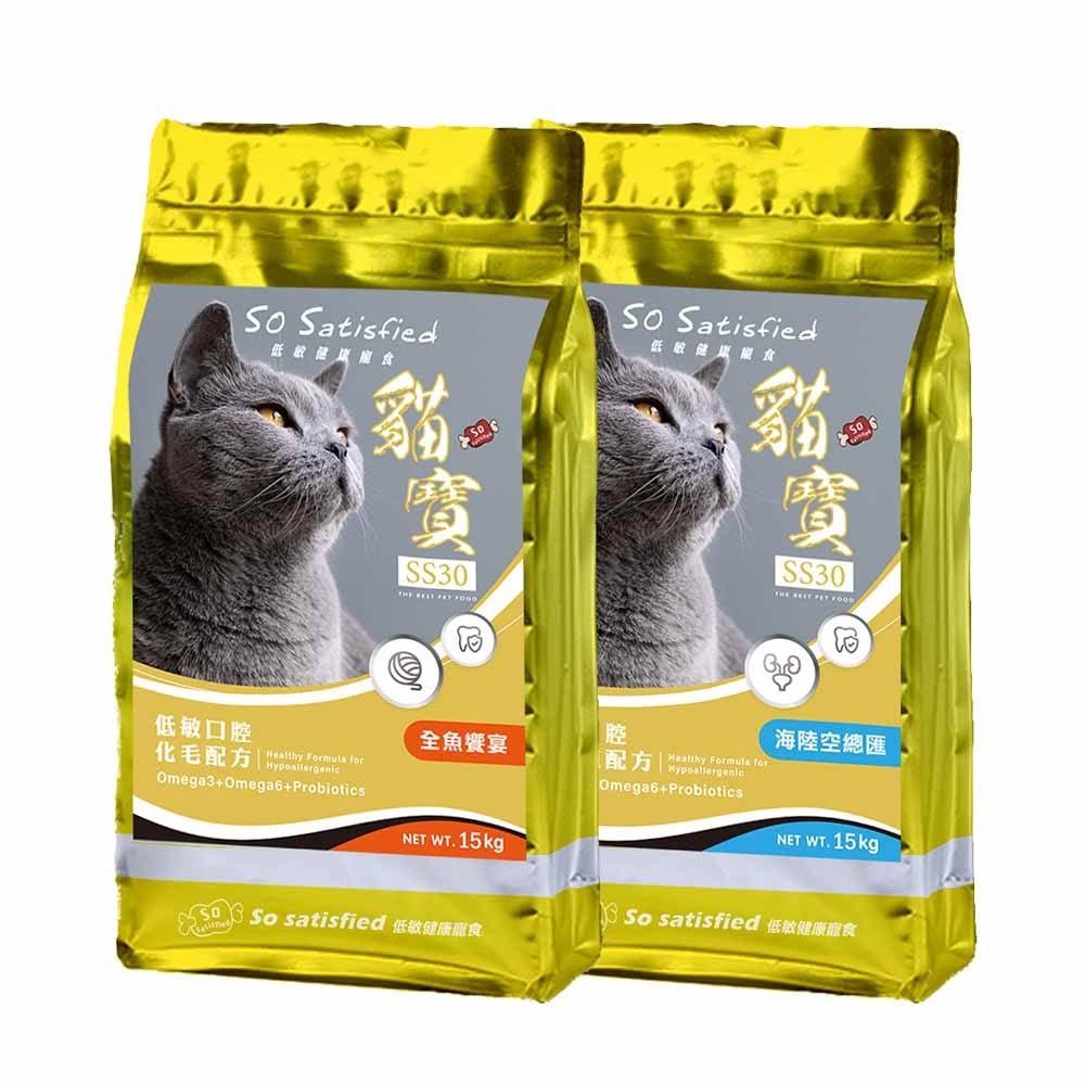 So satisfied 豪滿億貓寶 SS30嚴選低敏配方貓糧15KG 寵物飼料 貓咪飼料 貓飼料 成貓飼料 幼貓飼料 貓糧 低敏飼料