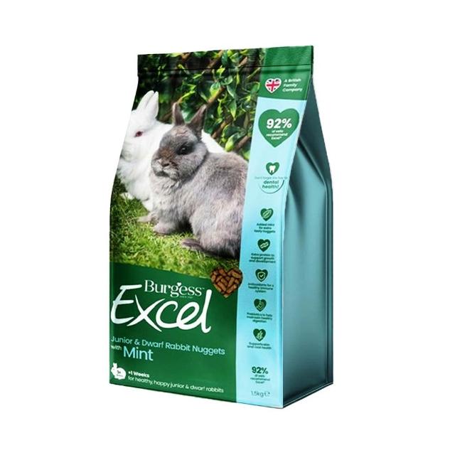 Burgess 伯爵幼兔及侏儒兔專用飼料-原味薄荷 1.5KG 兔飼料 寵物兔飼料 幼兔飼料 兔乾糧
