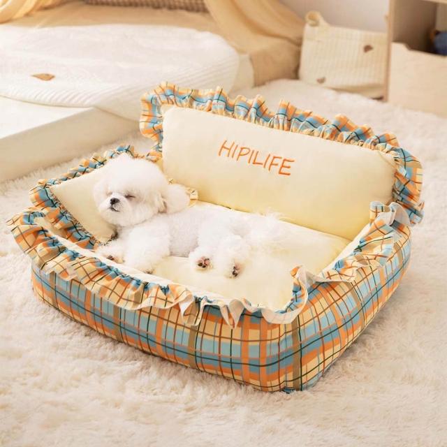 hipidog 嬉皮狗花邊公主靠背方窩 犬貓通用 狗狗睡床 寵物睡窩 狗睡窩 寵物方形睡窩
