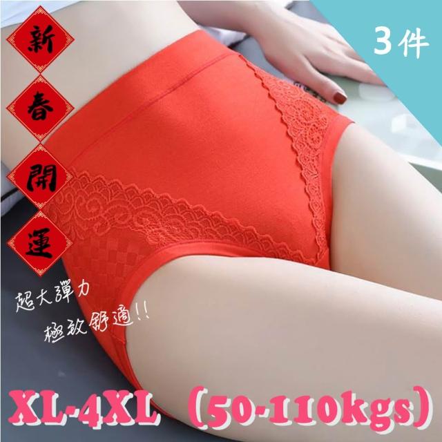 Everyday select3件組-大尺碼高彈莫代爾蕾絲內褲XL-4XL 50-110KGS(新春開運紅內褲)