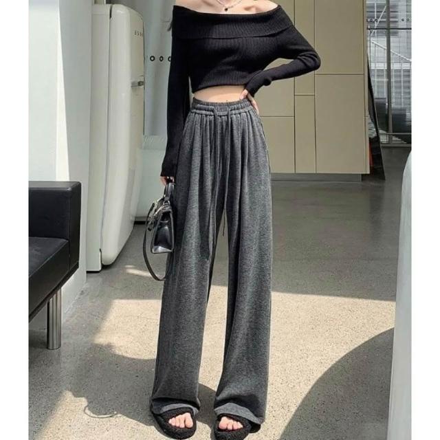 Everyday select高腰垂感糯米直筒寬褲-加絨款M~XL 48~80kgs女長褲大尺碼顯瘦直筒褲闊腿褲加絨保暖褲