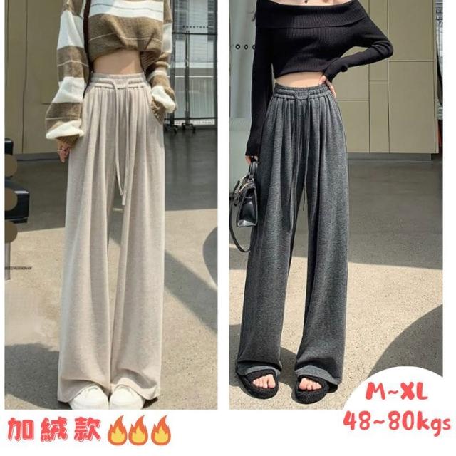 Everyday select高腰垂感糯米直筒寬褲-加絨款M~XL 48~80kgs女長褲大尺碼顯瘦直筒褲闊腿褲加絨保暖褲