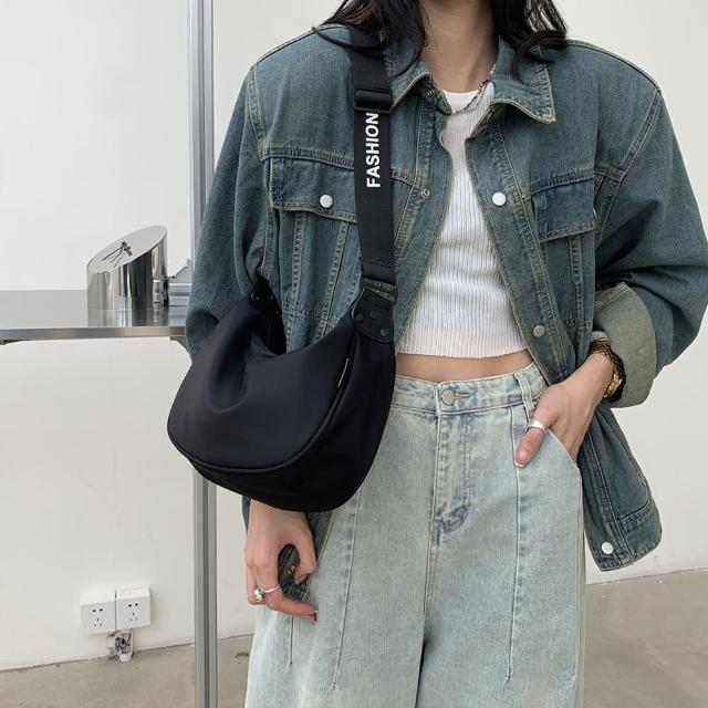 MoonDy女生包包 月半包 尼龍包包 側背包女 休閒包 寬肩帶 斜背包 防水包包 尼龍斜背包 尼龍包