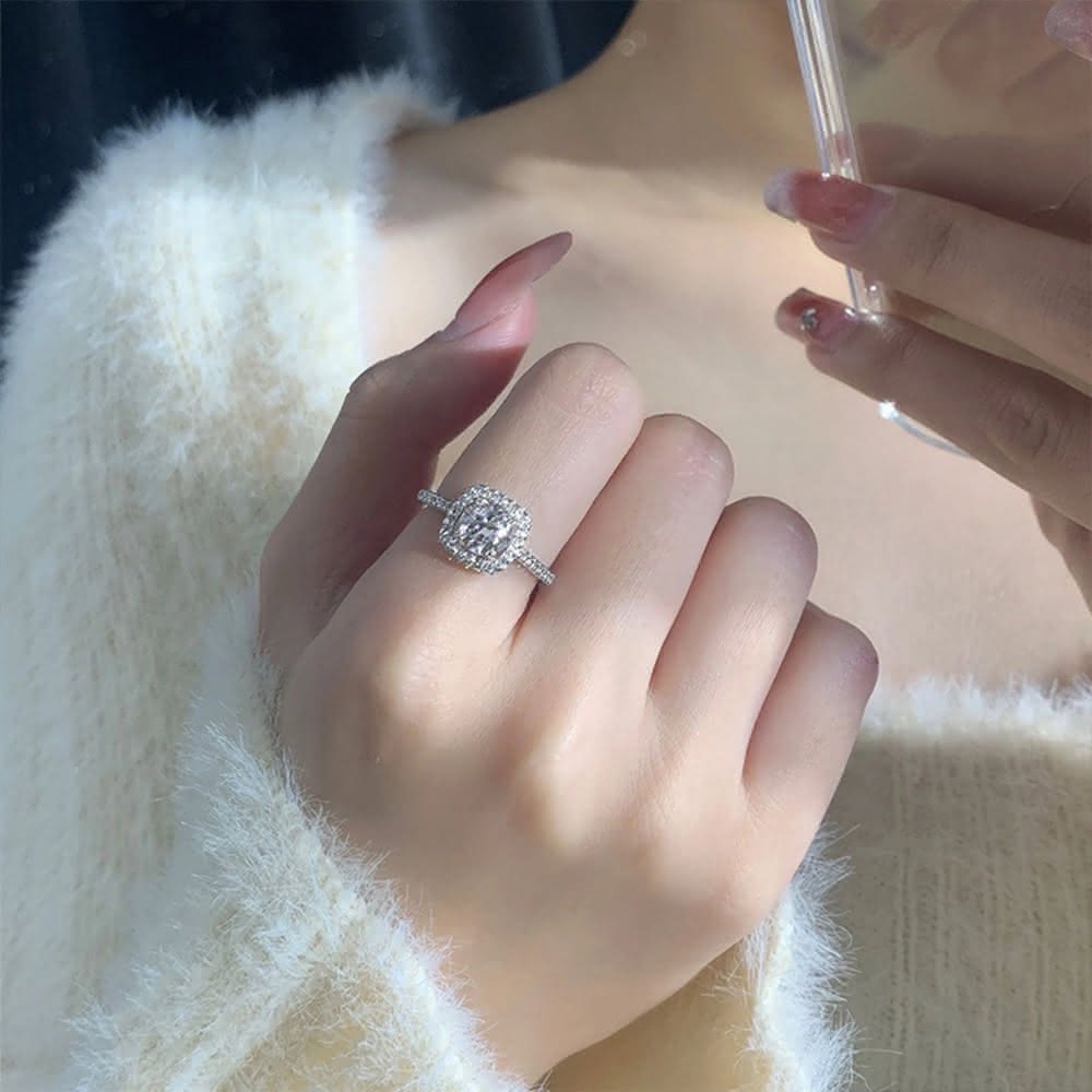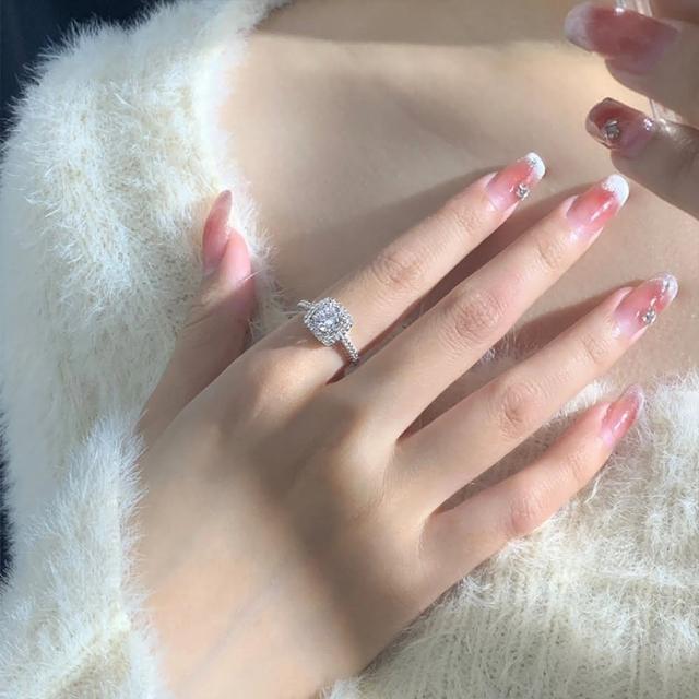 MoonDy戒指 純銀戒指 指環 銀戒指 鋯石戒指 生日禮物 韓國戒指 閨蜜戒指 個性戒指 大戒指 方形戒指 女戒