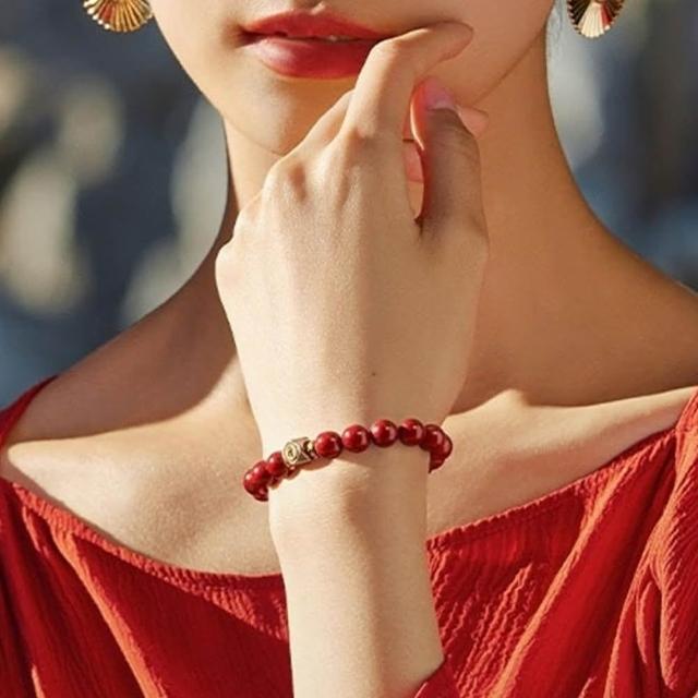 MoonDy紫金硃砂手串 轉運手鍊 情侶手鍊 男手鍊 本命年手環 生肖手鍊 避邪手鍊 招財手鍊 串珠手鍊 直徑0.8cm