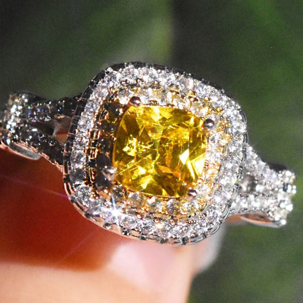 MoonDy指環 鋯戒 生日禮物 黃鋯石戒指 歐美戒指 結婚對戒 高級珠寶 方形鋯戒 食指戒 送長輩 生日禮物
