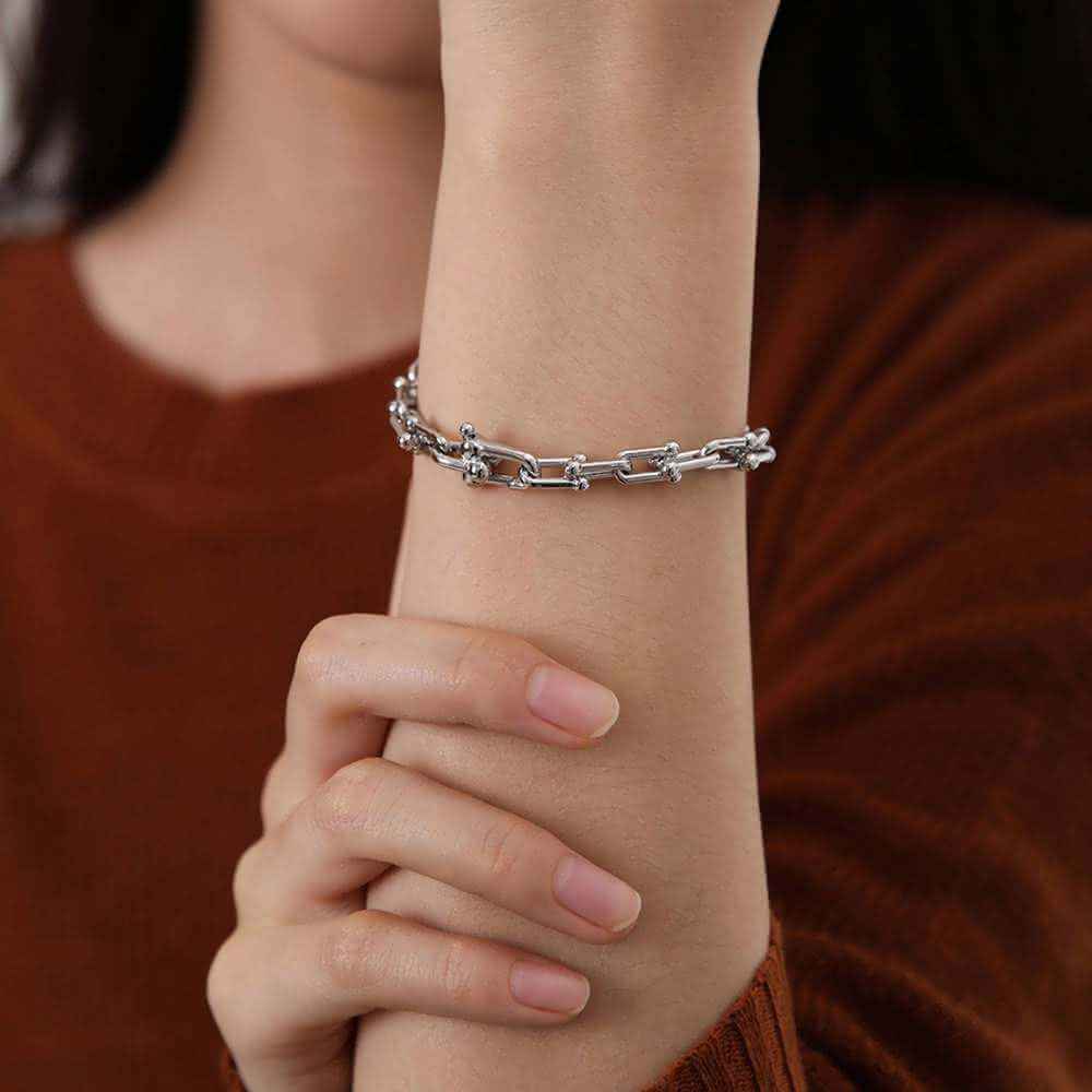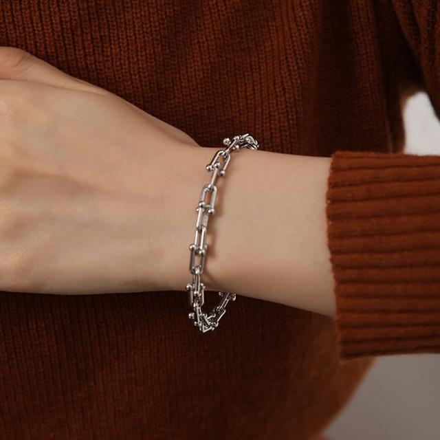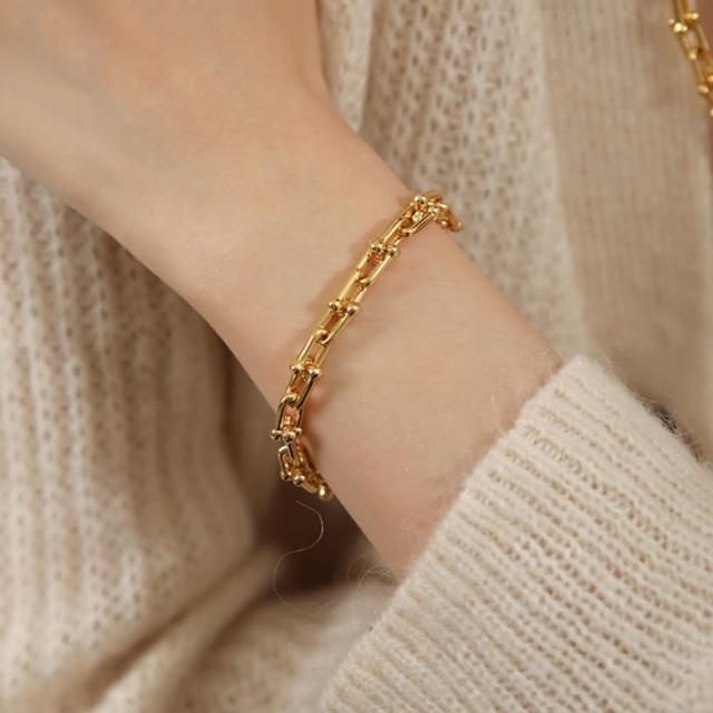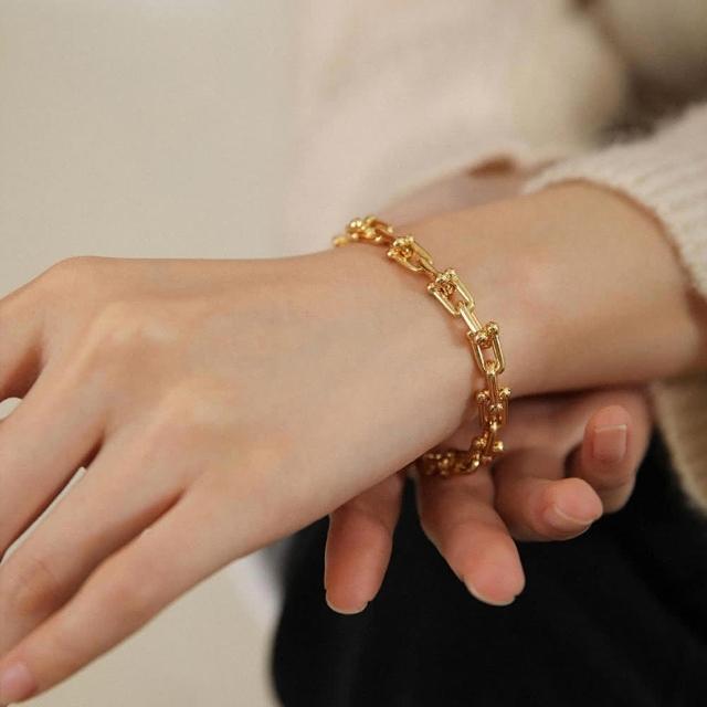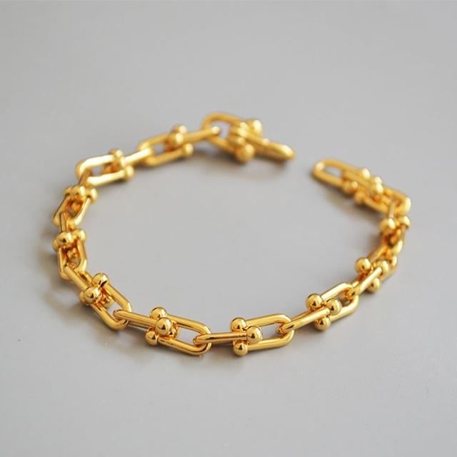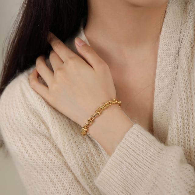 KT DADA金手鍊 韓國手鍊 情人節禮物 馬蹄扣手鏈 U型鎖扣手鏈 鏈條項鍊 情侶手鍊 銀手鍊 小眾設計