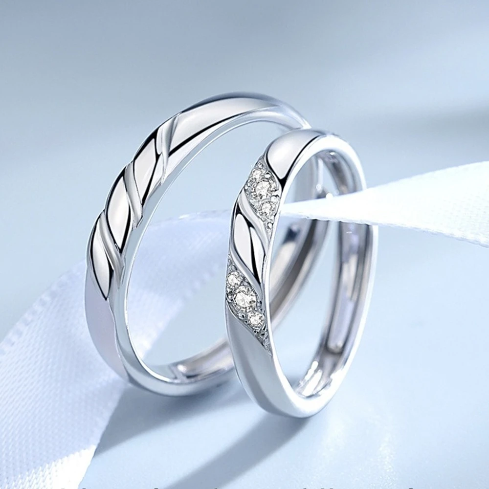MoonDy情侶戒指 純銀戒指 對戒 銀戒指 情侶對戒 開口戒指 韓款戒指 小眾戒指 鋯石戒指 男生戒指
