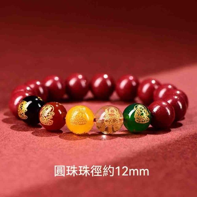 MoonDy五路財神手鍊 硃砂手鍊 直徑1.4公分 開運手鍊 本命硃砂手串 紫金砂手鍊 水晶手鍊 手鍊 男手串
