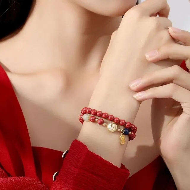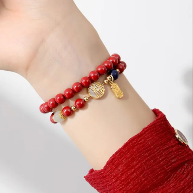 MoonDy手串 手鍊 手環 純銀手鍊 本命年 和田玉手鍊 雙層手鍊 福牌手鍊 珠砂手串 氣質手鍊 紅色手鍊 禮物 避邪手鍊