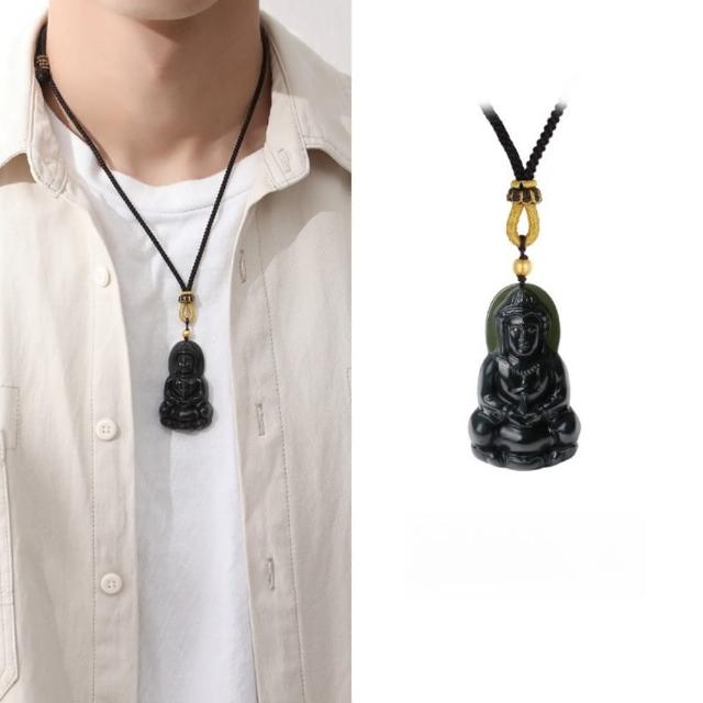 MoonDy項鍊 吊墜項鍊 佛牌項鍊 和田玉塔青 觀音吊墜 和田玉項鍊 觀音項鍊 999足金 編繩項鍊 男生項鍊 生日項鍊