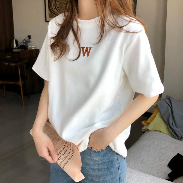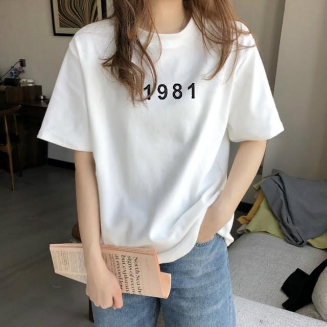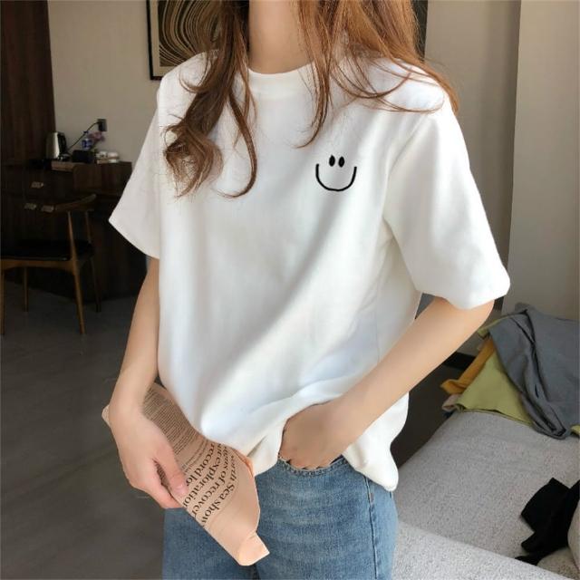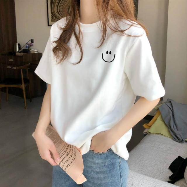 MoonDy圓領上衣 純棉短袖 寬版T恤 笑臉上衣 打底衫 美式上衣 上衣 女生上衣 寬版 t恤