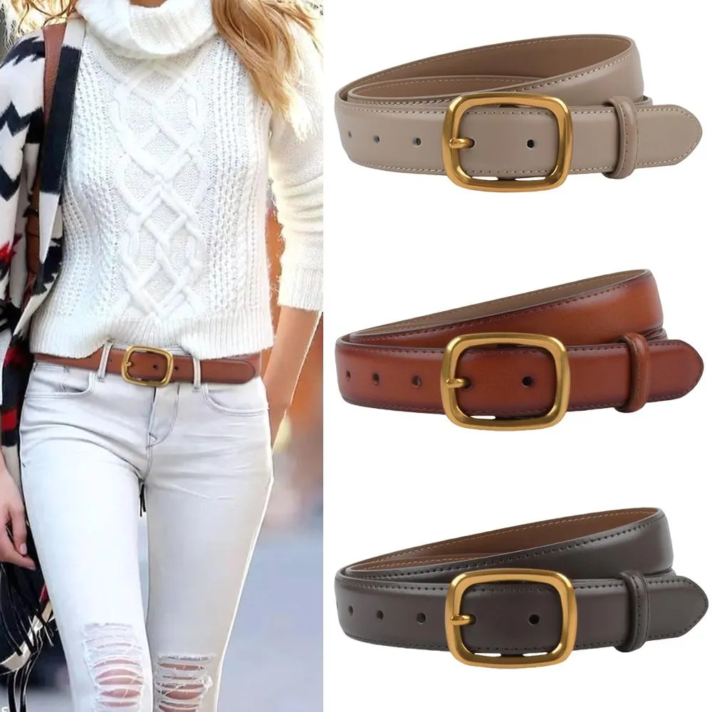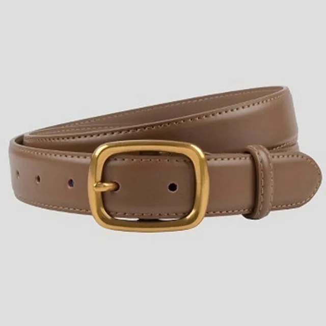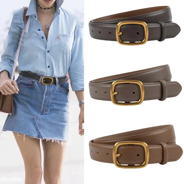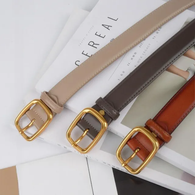 MoonDy皮帶 腰帶 褲帶 牛皮帶 復古皮帶 女生真皮皮帶 金扣腰帶 寬腰帶 方頭腰帶 高級感 老錢風配件 牛仔褲帶 禮物