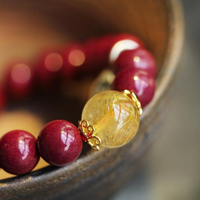 MoonDy手環 手串 佛珠 紫金砂手鍊 復古手鍊 保平安 化太歲 開運 金髮晶手鍊 避邪手鍊 鎮煞 祈福納財 女手鍊 禮物