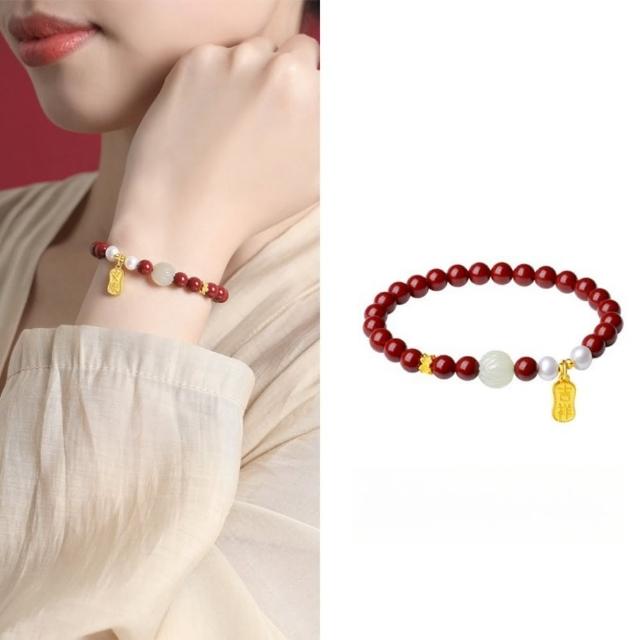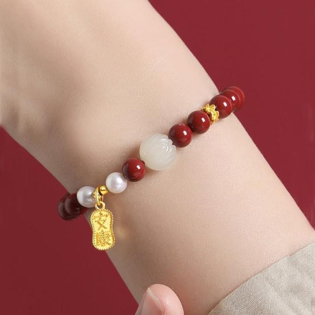 MoonDy手鍊 手串 硃砂 手珠 手環 珍珠手鍊 辟邪手鍊 手鍊串珠 和田玉 925純銀 招財納福 保平安 女生手鍊 轉運