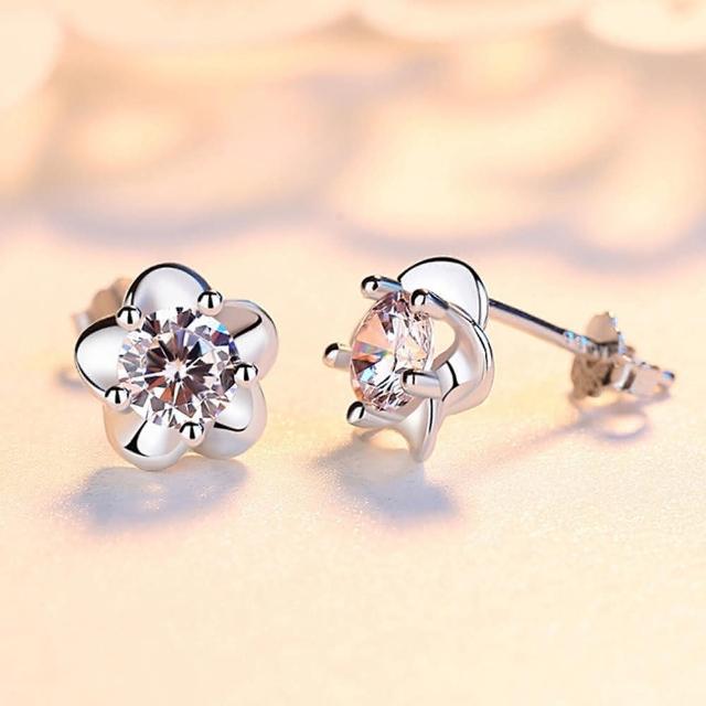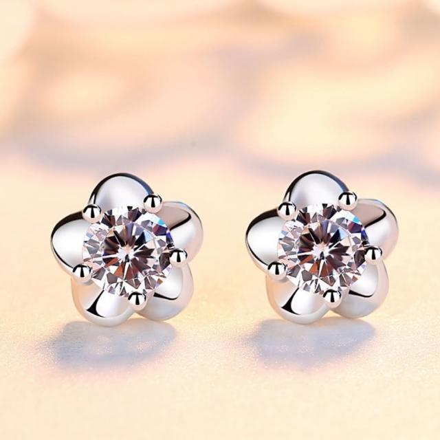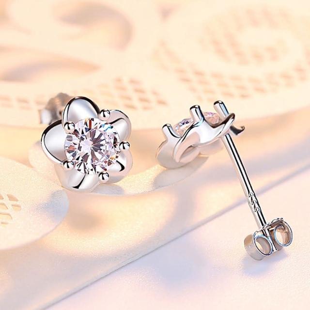 MoonDy925 純銀 耳扣 耳環女 耳釘 韓版飾品 小清新 生日禮物 櫻花耳環 小眾設計 氣質耳環 高級感 輕奢 復古耳環