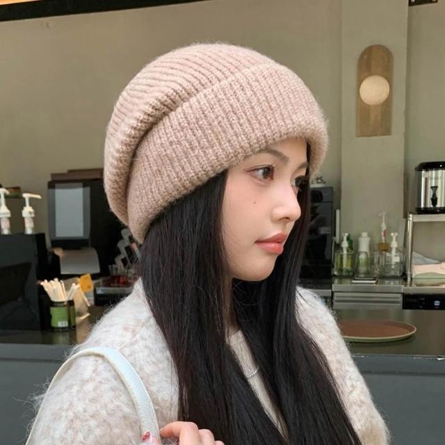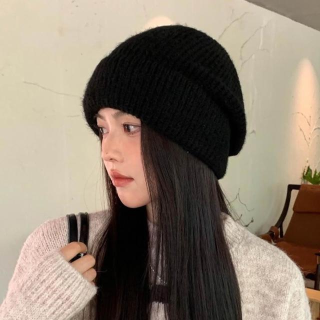 MoonDy毛線帽 堆堆帽 冷帽 針織帽 保暖帽 顯臉小帽 毛帽 包頭帽 護耳帽 子 大頭圍毛帽 韓版毛帽 高級感 ins風