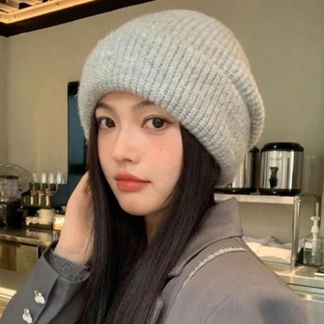 MoonDy毛線帽 堆堆帽 冷帽 針織帽 保暖帽 顯臉小帽 毛帽 包頭帽 護耳帽 子 大頭圍毛帽 韓版毛帽 高級感 ins風
