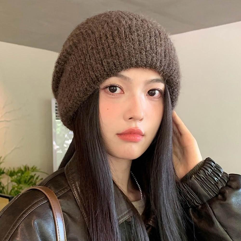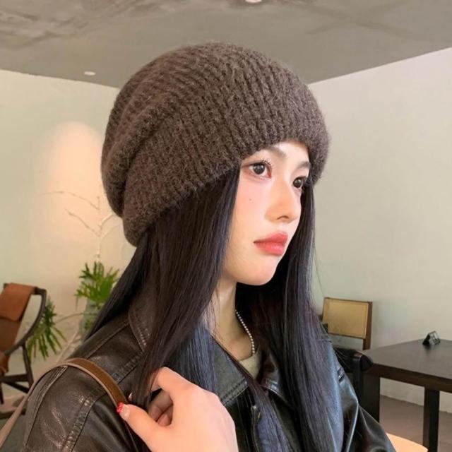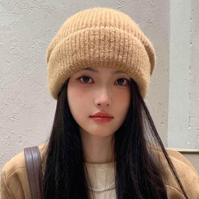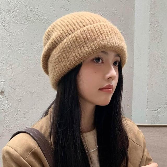 MoonDy毛線帽 堆堆帽 冷帽 針織帽 保暖帽 顯臉小帽 毛帽 包頭帽 護耳帽 子 大頭圍毛帽 韓版毛帽 高級感 ins風