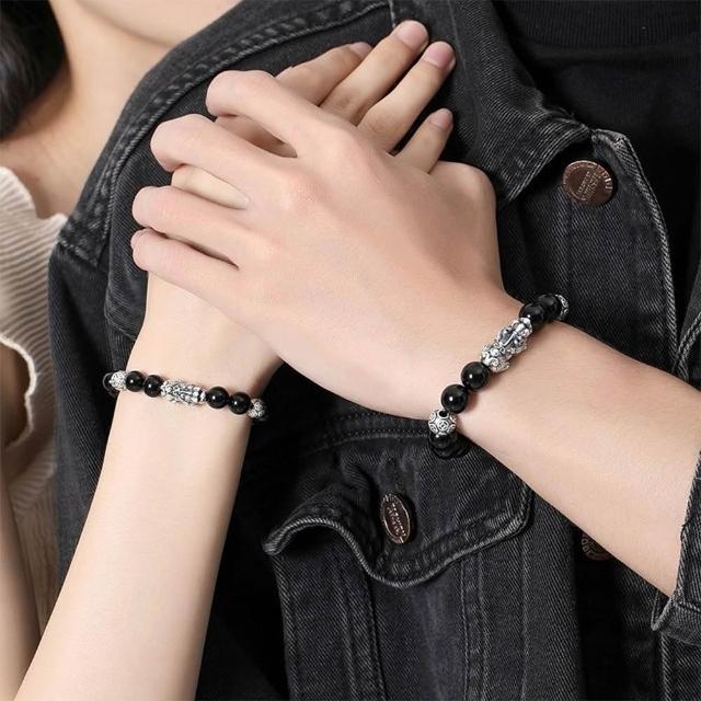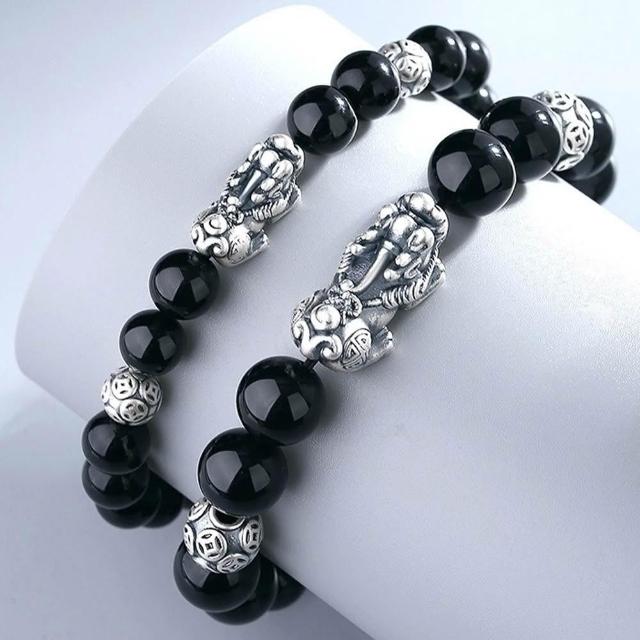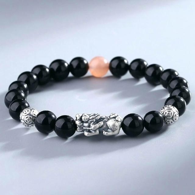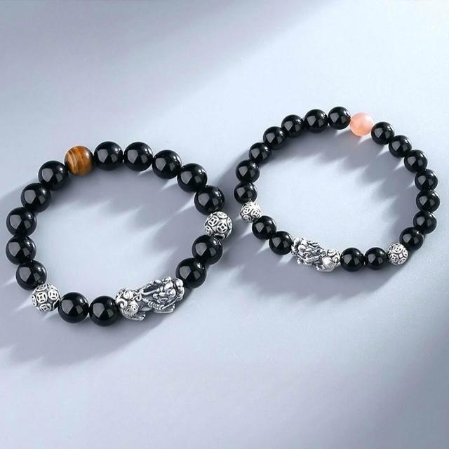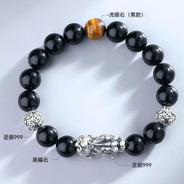 MoonDy999 純銀 貔貅 黑曜石 虎眼石 太陽石 飾品 保平安 招財納福 水晶手串 手鍊 串珠 情侶手鍊 情人節禮物