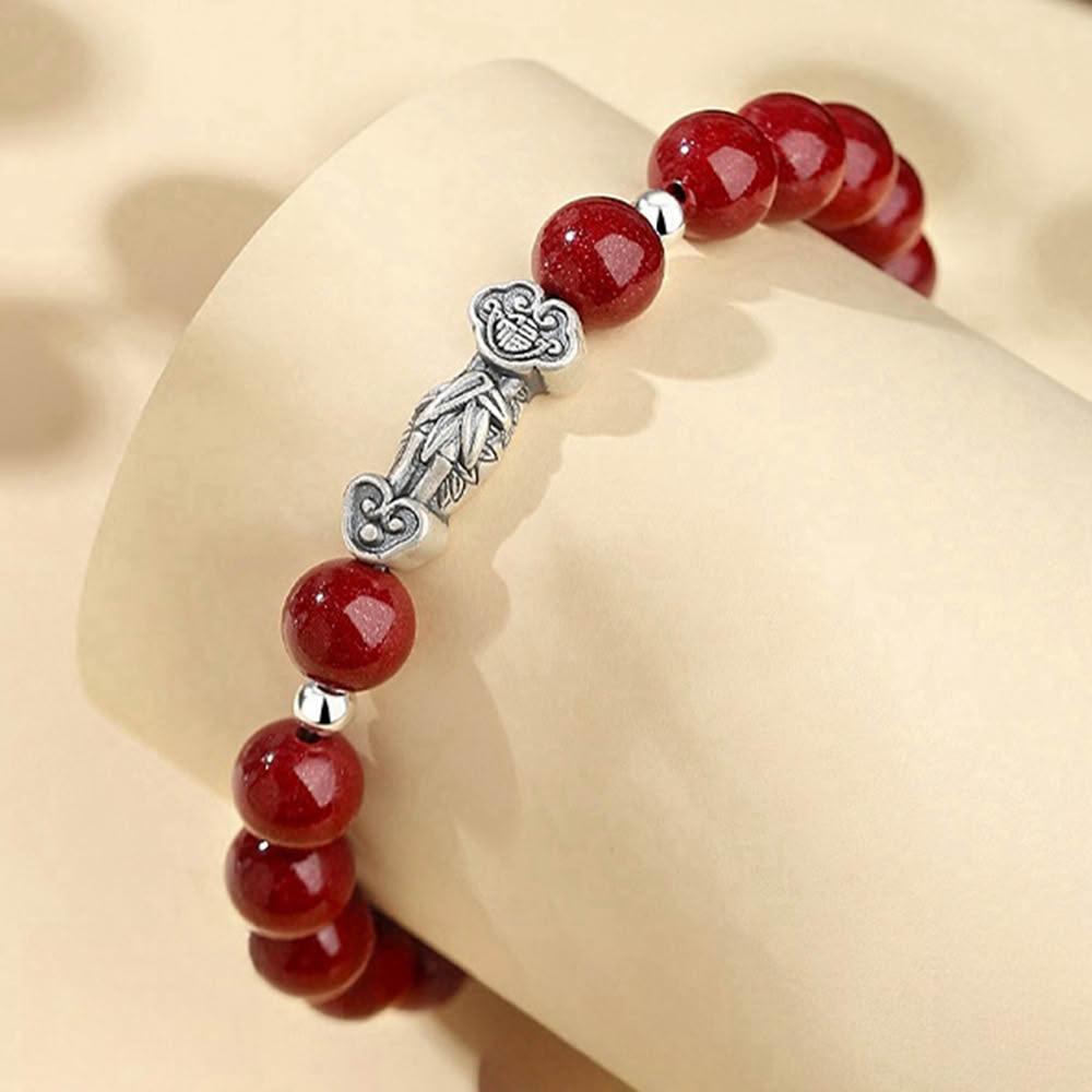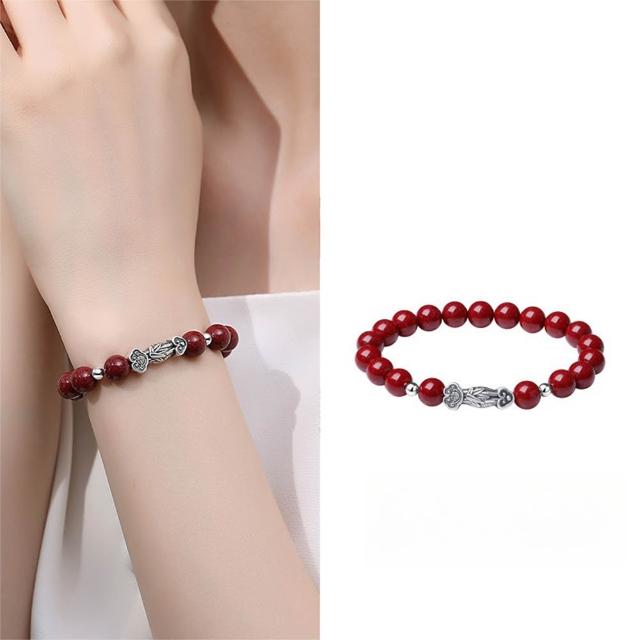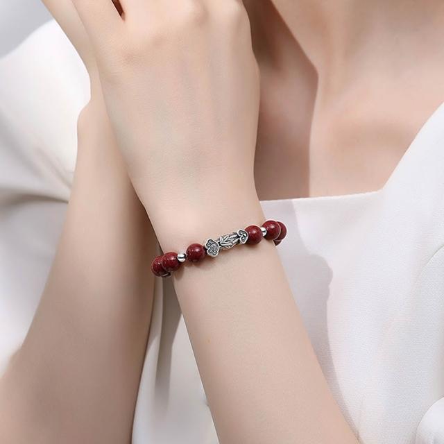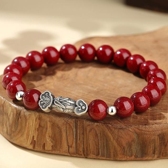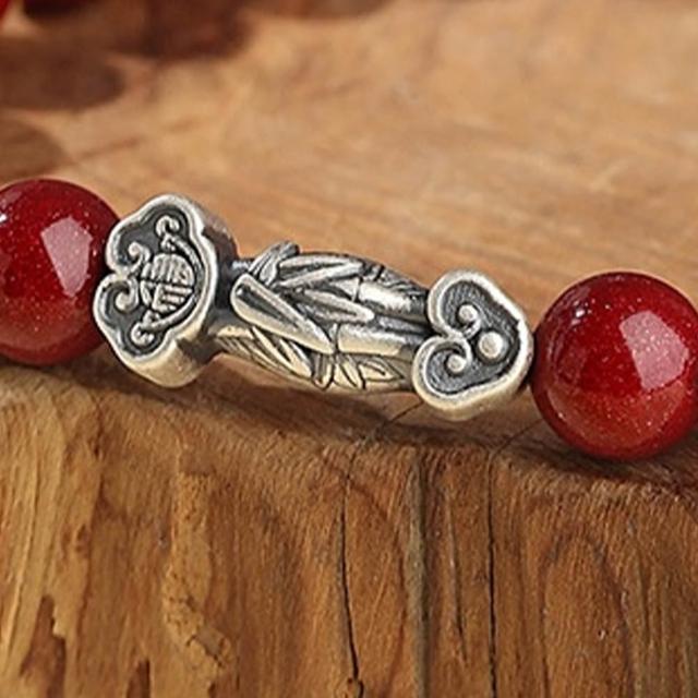 MoonDy手串 手鍊 佛珠手串 圓珠手鍊 硃砂手鍊 本命年 足銀999 紫金砂保平安 避邪手鍊 開運手鍊 泰銀飾品 禮物