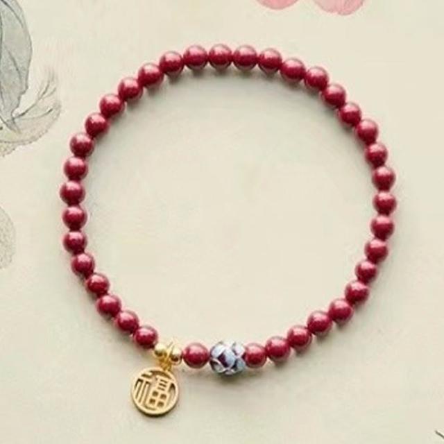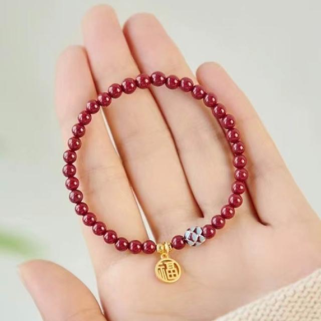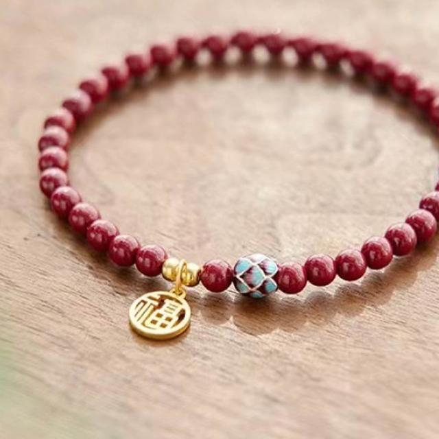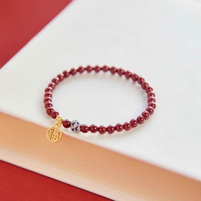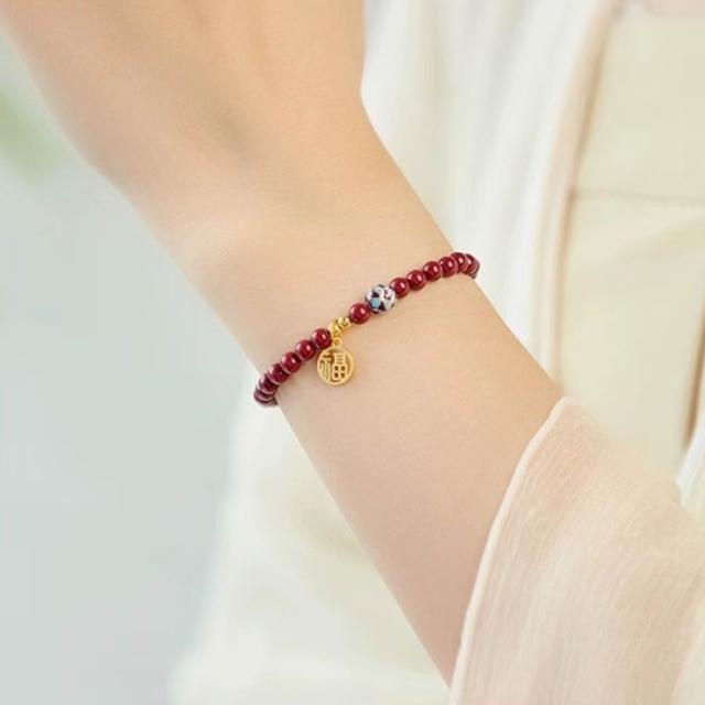 MoonDy手鍊 手串 手環 佛珠手鍊 高純度紫金砂 平安招福 紅色手鍊 串珠手鍊 硃砂手鍊 中國風 福字 避邪手鍊 禮物